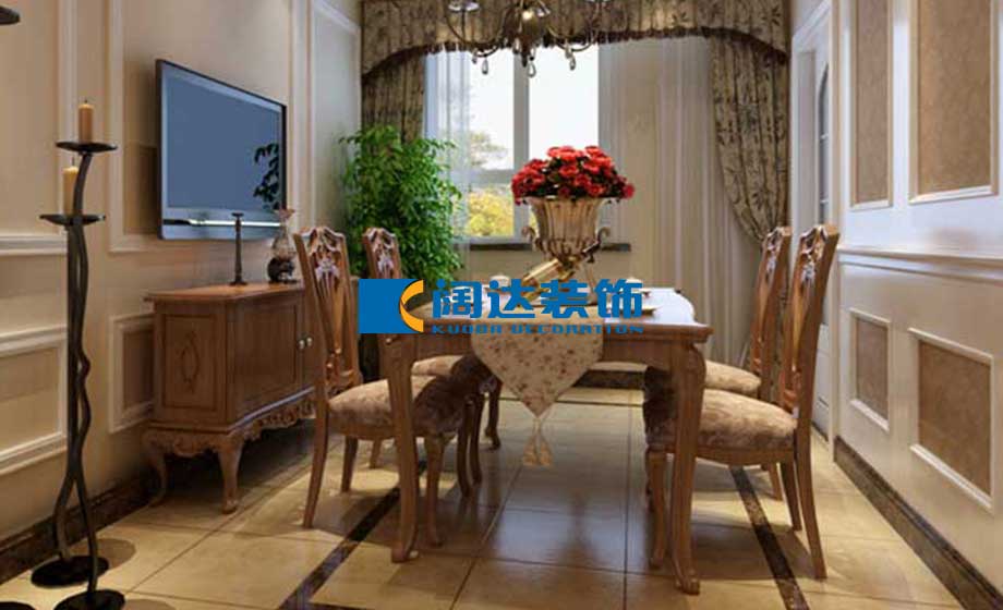 餐廳:餐廳的背景墻與沙發(fā)背景墻形成呼應(yīng)的狀態(tài),使房屋效果更加整體。地面也做了功能區(qū)域區(qū)分,不會讓人產(chǎn)生區(qū)域錯覺。