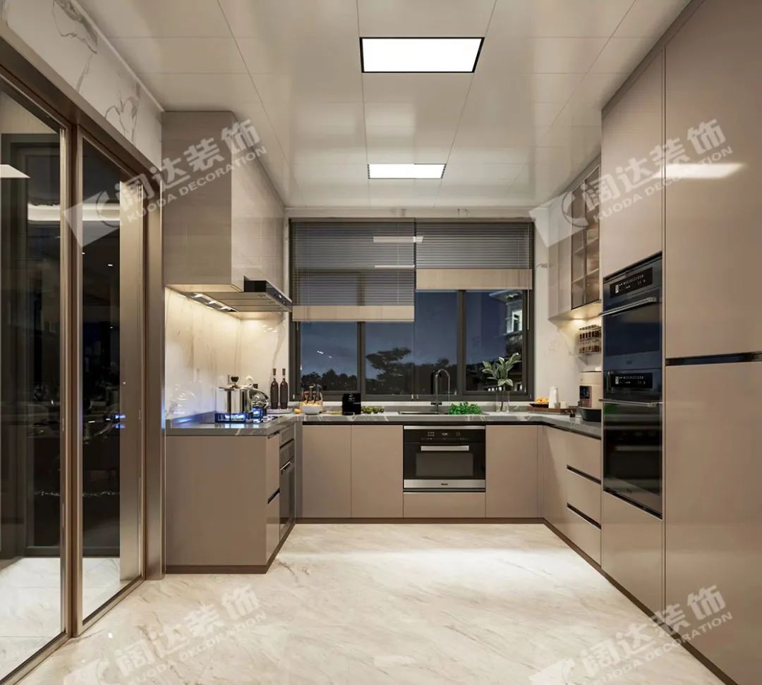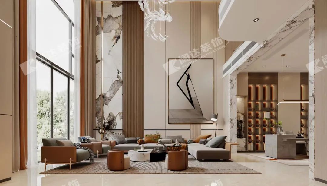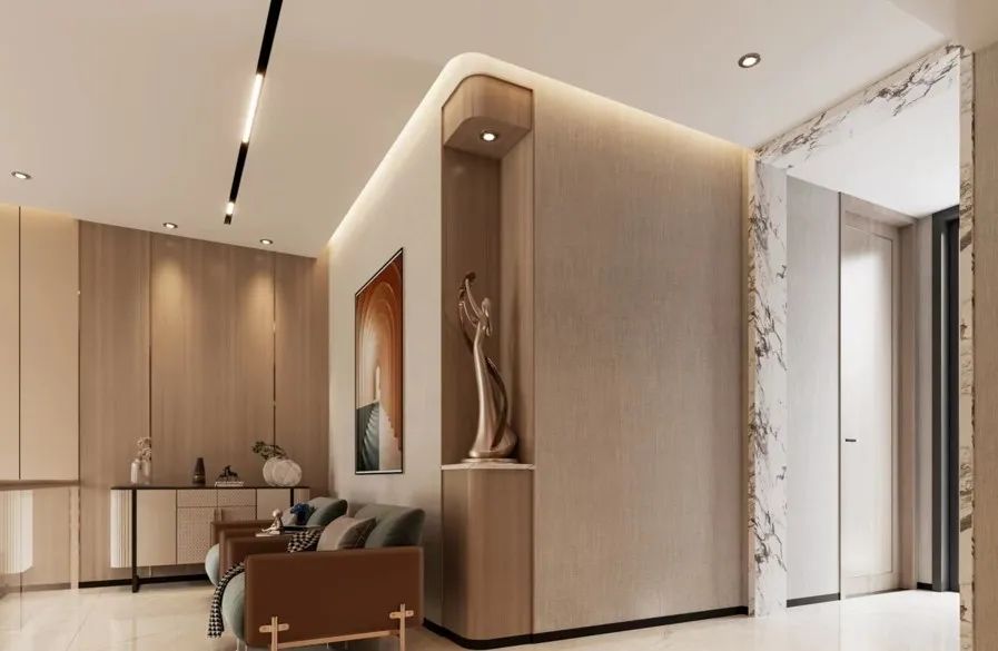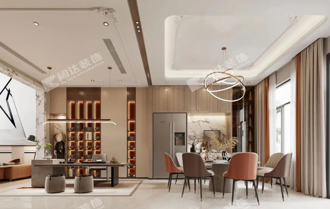 客廳:溫暖明亮,經(jīng)濟耐看是本案的主要需求之一,剔除了法式復(fù)雜的線形后,融入了現(xiàn)代溫暖明亮的暖色系風(fēng)格,材質(zhì)上搭配巖板,給予了視覺上的沖擊力,成為業(yè)主期待的理想之家。