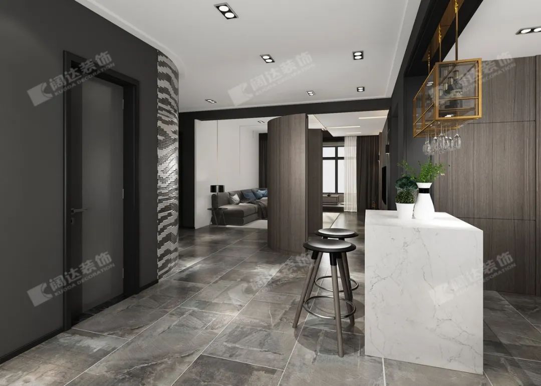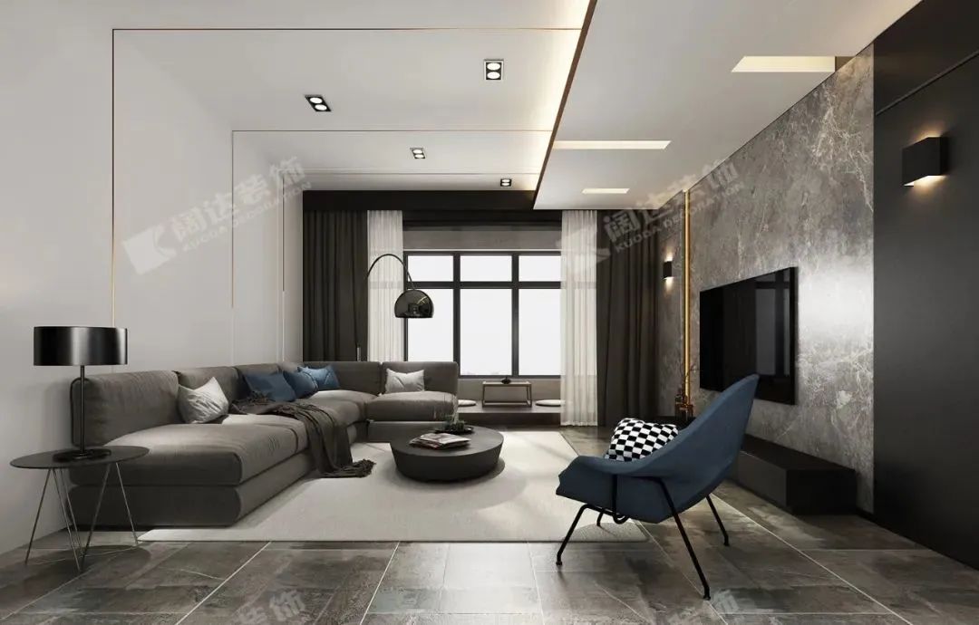 客廳與陽(yáng)臺(tái)貫通,增加了空間的開(kāi)闊感,用多種燈光的配比渲染光影,使得整個(gè)空間更加簡(jiǎn)潔干凈。
