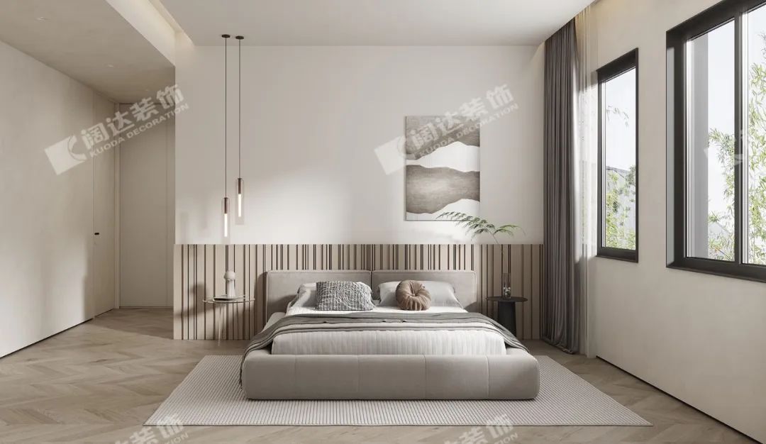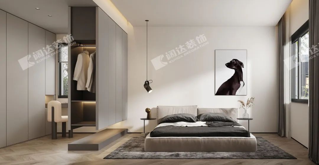 在個(gè)人獨(dú)立空間,針對(duì)每個(gè)房間使用者的生活習(xí)慣、需求去設(shè)立專屬他們的自在空間。比如進(jìn)入房間隨手放置雜物的平臺(tái)、掛置外衣的區(qū)域、長輩房的起夜燈又或者喜好的色系等。