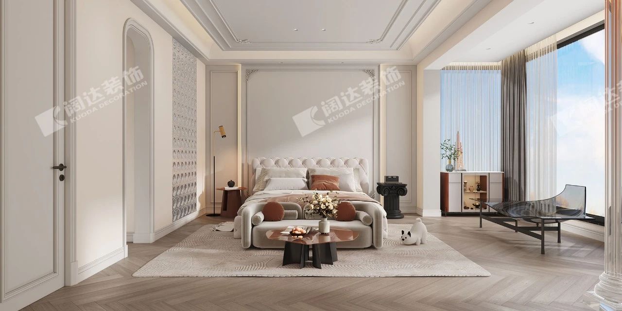 奶白色讓視覺(jué)空間更有延伸感,讓法式風(fēng)設(shè)計(jì)感加倍,天花板邊角精致的雕花和花紋,增添了空間的精致度,提升了房間的整體顏值與質(zhì)感。法式家居在色彩上較為質(zhì)樸與素凈,偏向于明亮的色系,以簡(jiǎn)單的設(shè)計(jì),來(lái)涵蓋所有功能和空間,線條感奠定了法式風(fēng)的基調(diào),用多種燈光的配比渲染光影,使得整個(gè)空間更加簡(jiǎn)潔干凈。