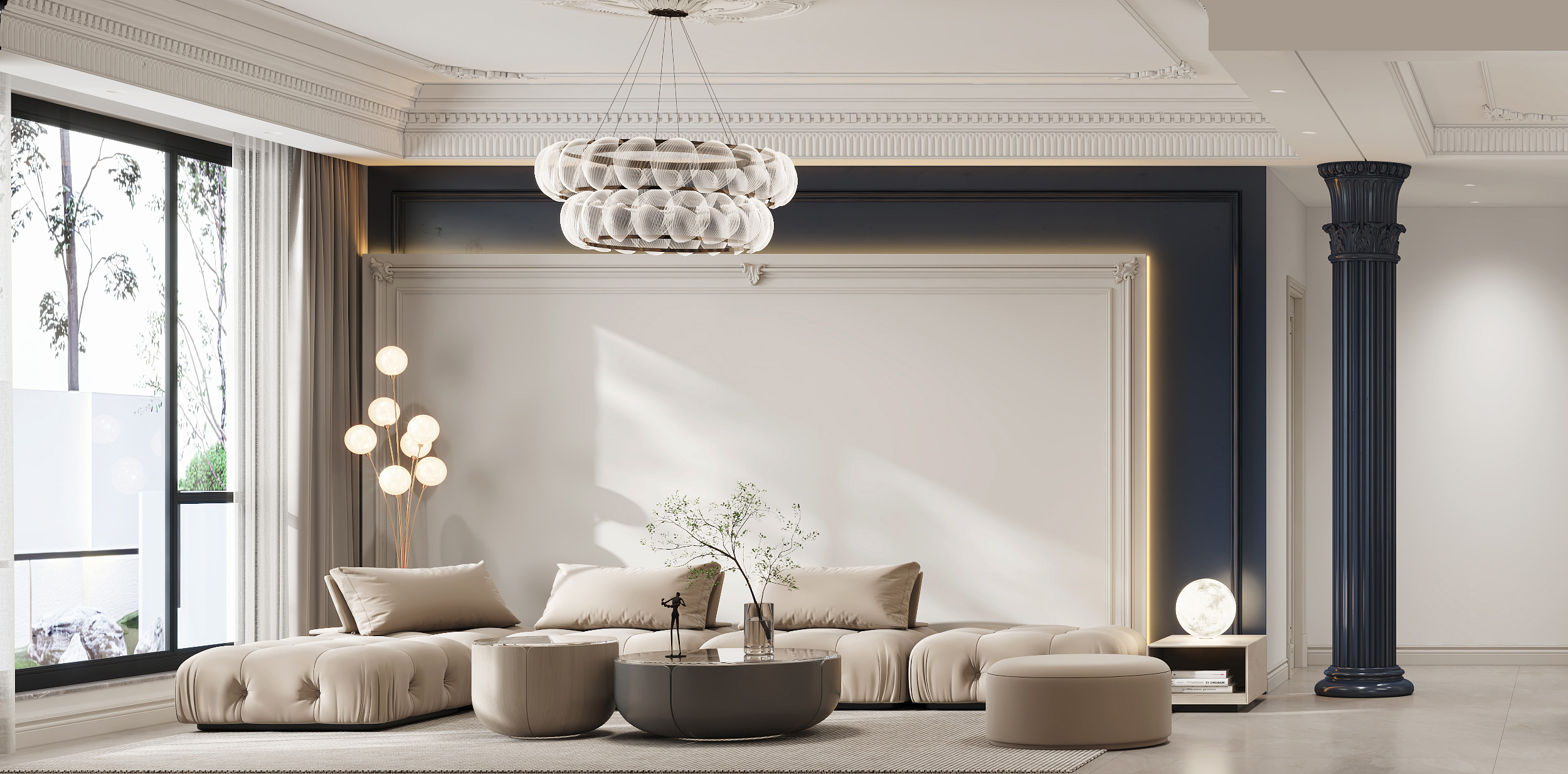 簡(jiǎn)潔有品質(zhì)的現(xiàn)代茶幾、沙發(fā)融合法式設(shè)計(jì)的浪漫情懷,色彩層次與藝術(shù)韻律相互映襯,使家里的每個(gè)角落都美得柔和而高級(jí)。