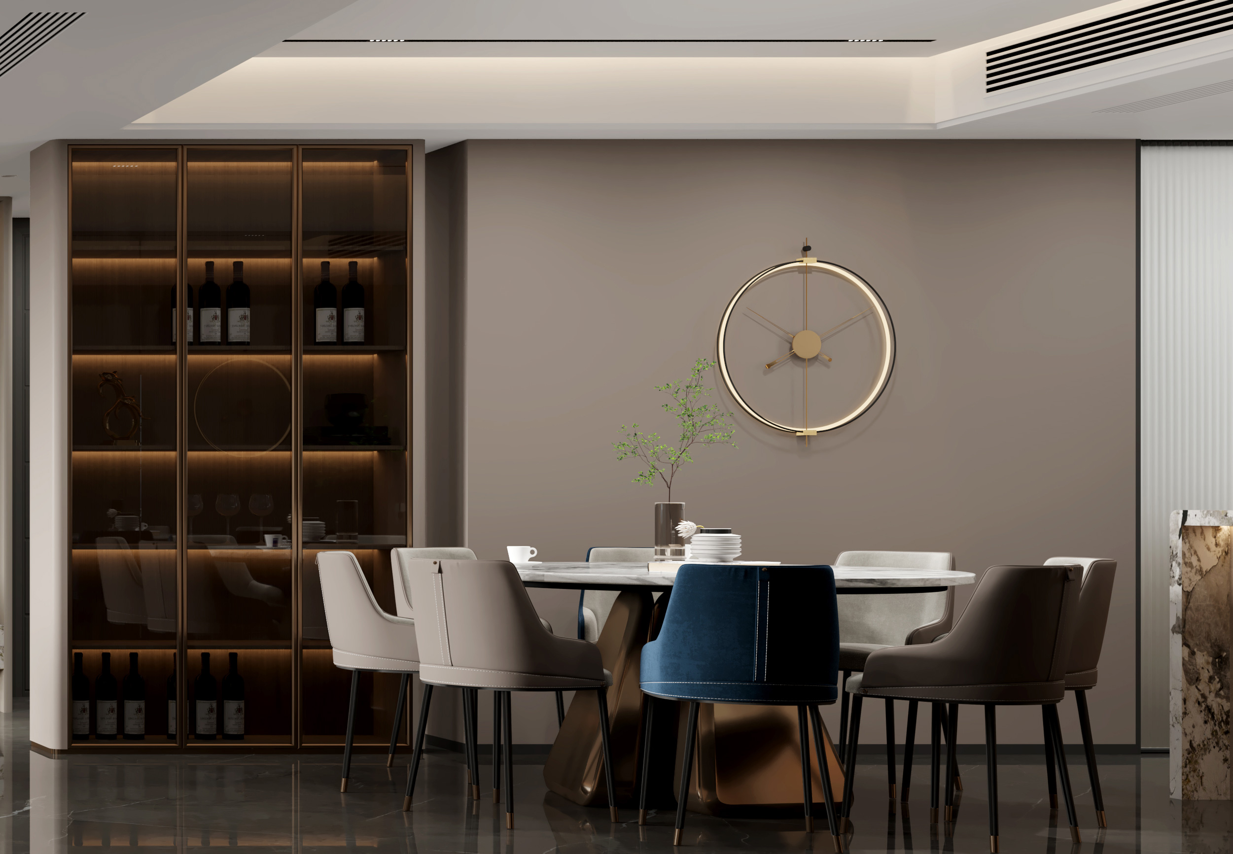 此風(fēng)格通常采用對比、統(tǒng)一、節(jié)奏、韻律等形式美的設(shè)計(jì)語言,主導(dǎo)空間,突出現(xiàn)代形式感。