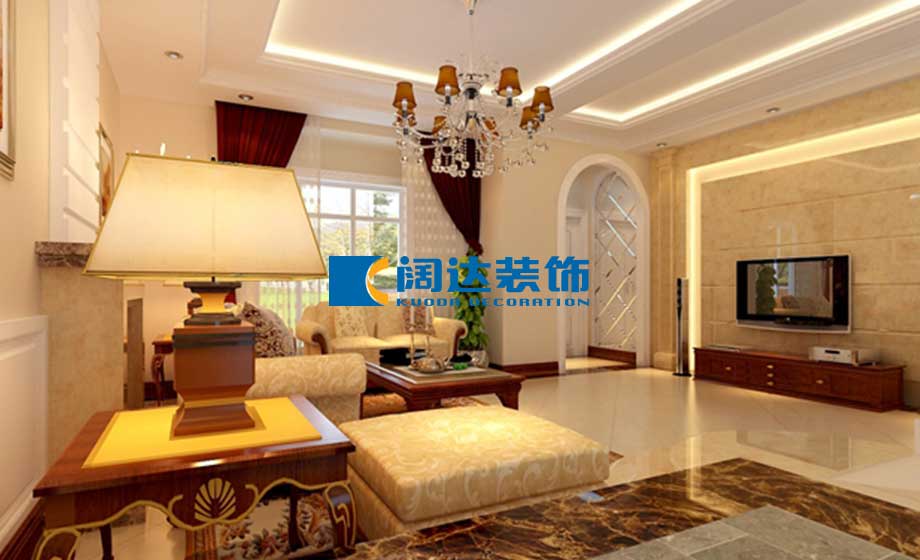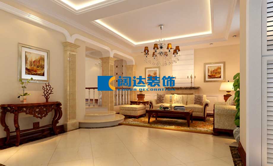本案設(shè)計(jì)采用了簡(jiǎn)化的美式線條造型墻板,與天棚的線條框渾然一體,覆以純凈的白色,顯得更加明快,格調(diào)端莊典雅。配合美式經(jīng)典家具,讓空間頗有內(nèi)涵與品位。地面為西班牙米黃石材結(jié)合咖網(wǎng)紋波打線,多種元素的混搭所營(yíng)造的精致場(chǎng)景尤顯奢華富麗。同風(fēng)格案例:更多>>