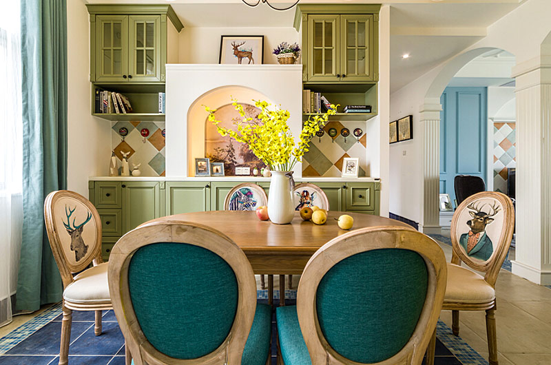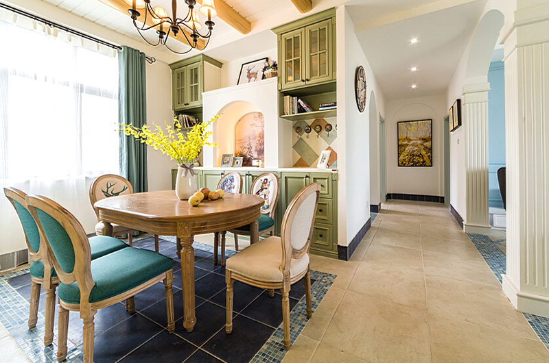 本案中的130平米的三居室整體采用了地中海風(fēng)格裝修,并在清爽愜意的空間氛圍中融入了田園風(fēng)格的清新自然感,在色彩的選擇上也盡量的以清爽的藍(lán)色和富有活力的明黃色為主,并在餐廳中運(yùn)用了象征著森林的墨綠色,為空間帶來(lái)靜謐之感的同時(shí)也增添了幾分自然的氣息。同風(fēng)格案例:更多>>
