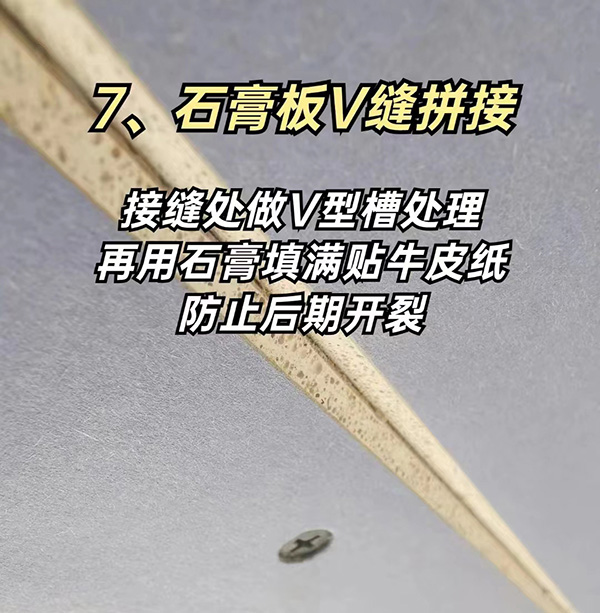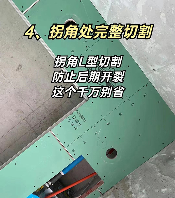 而在石膏板有邊頂?shù)那闆r下,我們要求是底托上,就算發(fā)生開裂也是側(cè)面開裂,不是底面開裂。包括7字型拐角處,我們也是要求使用一整張石膏板進(jìn)行切割,沒有接口,更大程度降低開裂的風(fēng)險(xiǎn)。