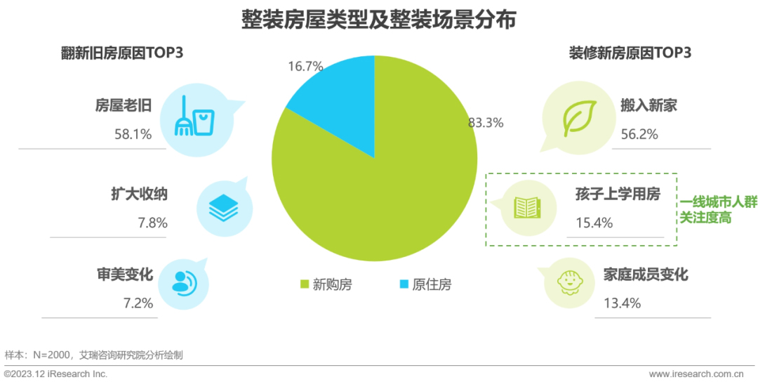 一、裝修動(dòng)機(jī):新購(gòu)房裝修和搬新家仍然是消費(fèi)者產(chǎn)生裝修需求的主要?jiǎng)訖C(jī)。