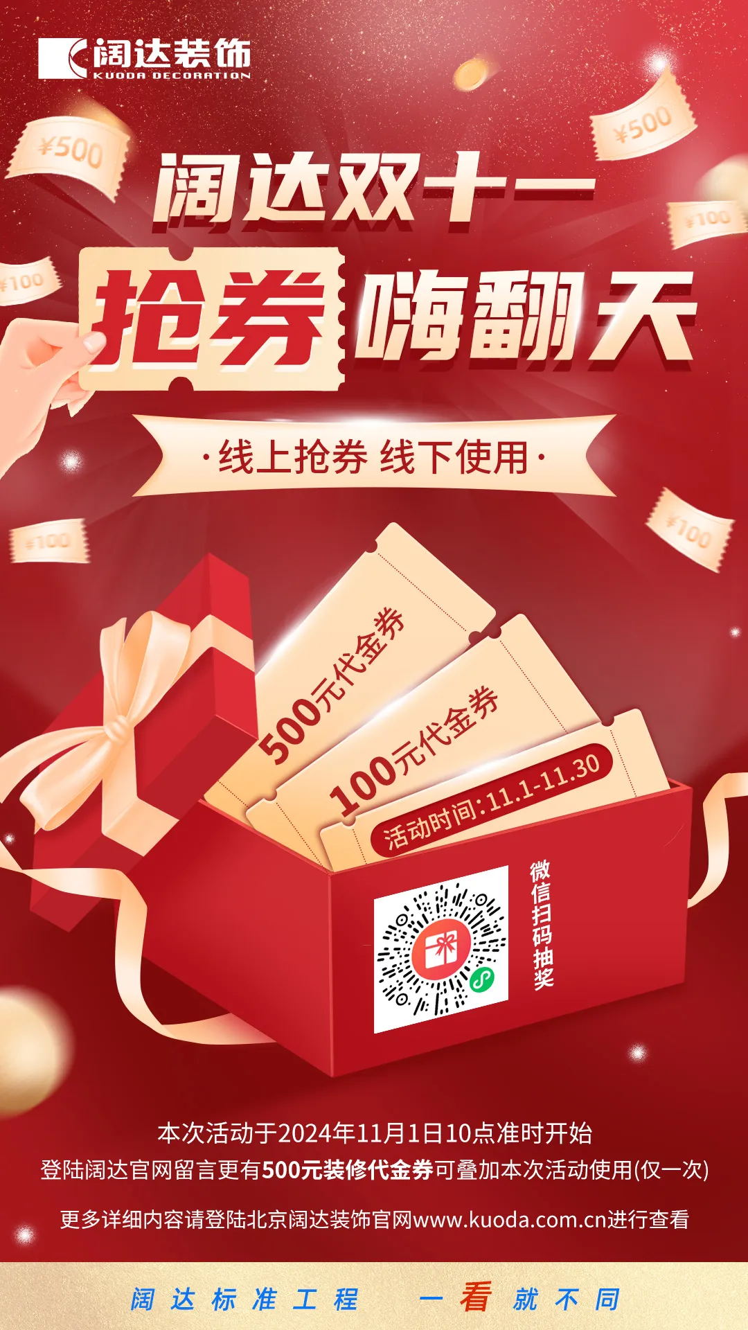 3、11月8日10點至11月30日可前往闊達官方授權門店進行預約裝修,享受優(yōu)惠券抵扣。