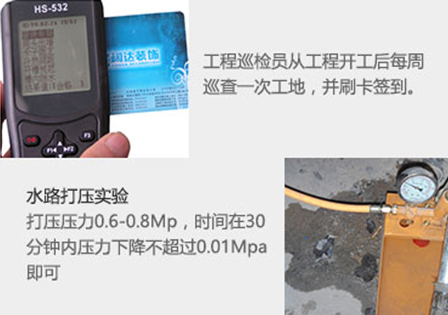 我們從材料驗收、水電驗收、隱蔽工程驗收、防水工程驗收、墻面平整程度驗收、中期驗收、竣工驗收等全關(guān)節(jié)的驗收標(biāo)準(zhǔn),保障了工程的嚴(yán)格執(zhí)行,讓您坐享品質(zhì)工程。